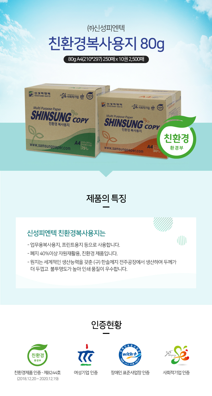 [¼­¿ï, °æ±â, ÀÎõ¸¸ ÁÖ¹®°¡´É] ģȯ°æº¹»ç¿ëÁö A4 80g
